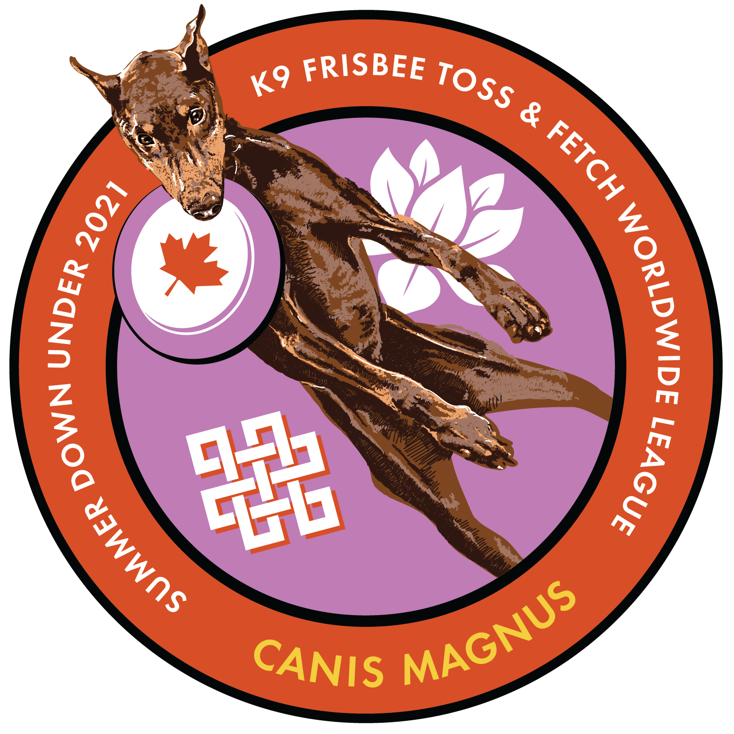 We’re going to mark the start of a new and better year, when the K9 Frisbee Toss & Fetch Worldwide League kicks off 2021 with Summer Down Under Season, with this patch dedicated to Karma, Toronto Club member Gordon Cheung’s amazing frisbee-loving Doberman who died in her prime when this unforgettable year began.